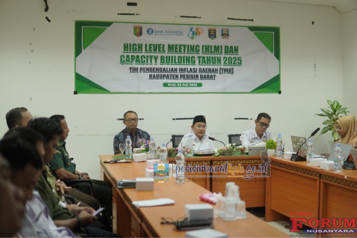 ForumNusantaranews.com PESISIR BARAT-Wakil Bupati Pesisir Barat (Pesibar), Irawan Topani, S.H., M.Kn., membuka kegiatan High Level Meeting (HLM) Tim Pengendali Inflasi Daerah (TPID) Pesibar dan Capacity Building TIPD, di Ruang Ngejalang Lantai 1 Komplek Perkantoran Pemkab Pesibar, Rabu (23/7/2025).