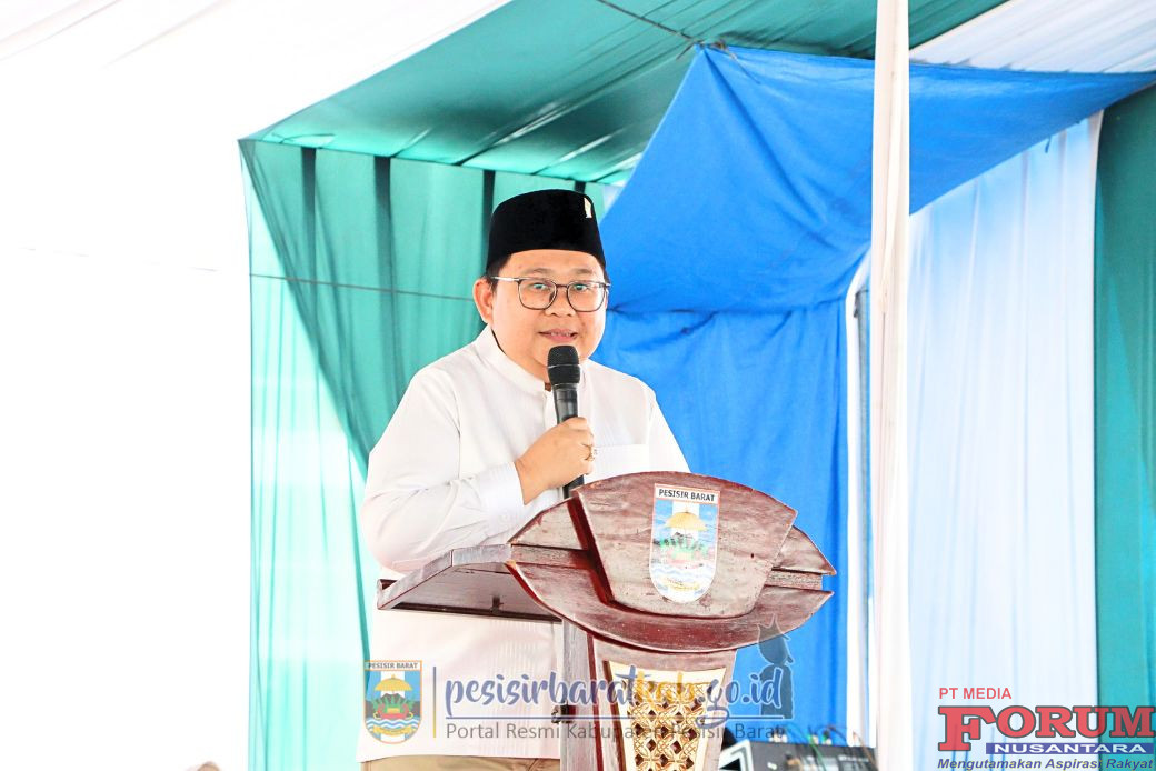 ForumNusantaranews.com PESISIR BARAT-Wakil Bupati Pesisir Barat (Pesibar), Irawan Topani, S.H., M.Kn., menghadiri sekaligus membuka kegiatan Pengajian Akbar Tahun 2025 yang digelar Badan Kontak Majelis Taklim (BKMT) Pesibar, di Lapangan Komplek Pemkab Pesibar, Senin (29/12/2025).