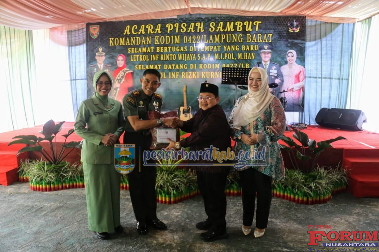 ForumNusantaranews.com PESISIR BARAT-Wakil Bupati Pesisir Barat (Pesibar), Irawan Topani, S.H., M.Kn., menghadiri pisah sambut Komandan Kodim 0422/Lampung Barat (Lambar) lama, Letkol. Inf. Rinto Wijaya, S.A.P., M.I.Pol., M.Han., dengan Dandim yang baru, Letkol. Inf. Rizky Kurniawan, di Makodim 0422/Lambar, Sabtu (28/6/2025).