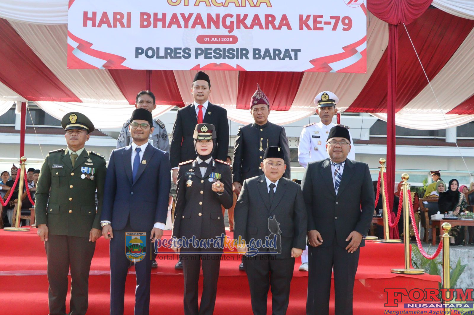 ForumNusantaranews.com PESISIR BARAT-Wakil Bupati Pesisir Barat (Pesibar), Irawan Topani, S.H., M.Kn., menghadiri Upacara Peringatan Hari Bhayangkara ke-79, di Halaman Komplek Perkantoran Pemkab Pesibar, Selasa (1/7/2025).