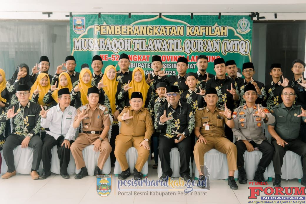 ForumNusantaranews.com PESISIR BARAT-Wakil Bupati Pesisir Barat (Pesibar), Irawan Topani, S.H., M.Kn., melepas pemberangkatan Kafilah Musabaqah Tilawatil Quran (MTQ) ke-52 tingkat Provinsi Lampung, di selasar Komplek Pemkab Pesibar, Senin (8/12/2025).