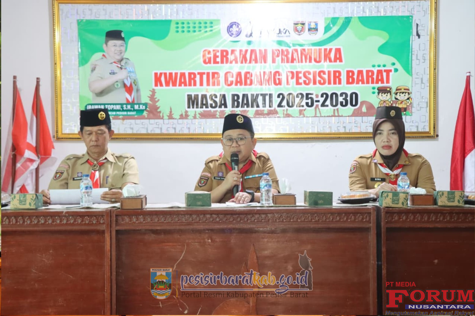 ForumNusantaranews.com Pesisir Barat -Wakil Bupati Pesisir Barat, Irawan Topani, SH.,M.Kn. selaku Ketua Kwartir Cabang (Kwarcab) Gerakan Pramuka Pesisir Barat memimpin secara langsung rapat koordinasi jajaran pengurus Kwartir Cabang Gerakan Pramuka Pesisir Barat Tahun 2026, di Gedung Sanggar Pramuka Kwarcab Pesisir Barat, Pekon Kampung Jawa, Rabu (21/1/2026).
