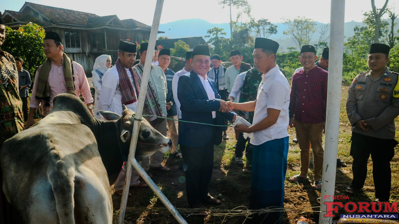 Usai melaksanakan sholat, beliau menyerahkan satu ekor sapi sebagai hewan kurban dari Pemerintah Kabupaten Lampung Barat kepada masyarakat setempat.