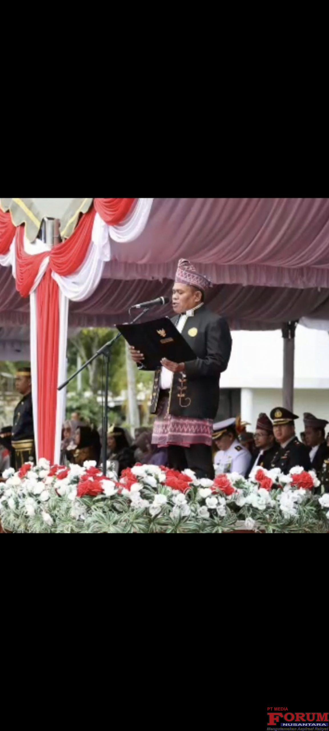 Dalam suasana penuh khidmat,Bupati Andi Rudi Latif membacakan amanat Menteri Sosial RI,Saifullah Yusuf,dengan ekspresi haru yang menggugah semangat seluruh peserta upacara.
