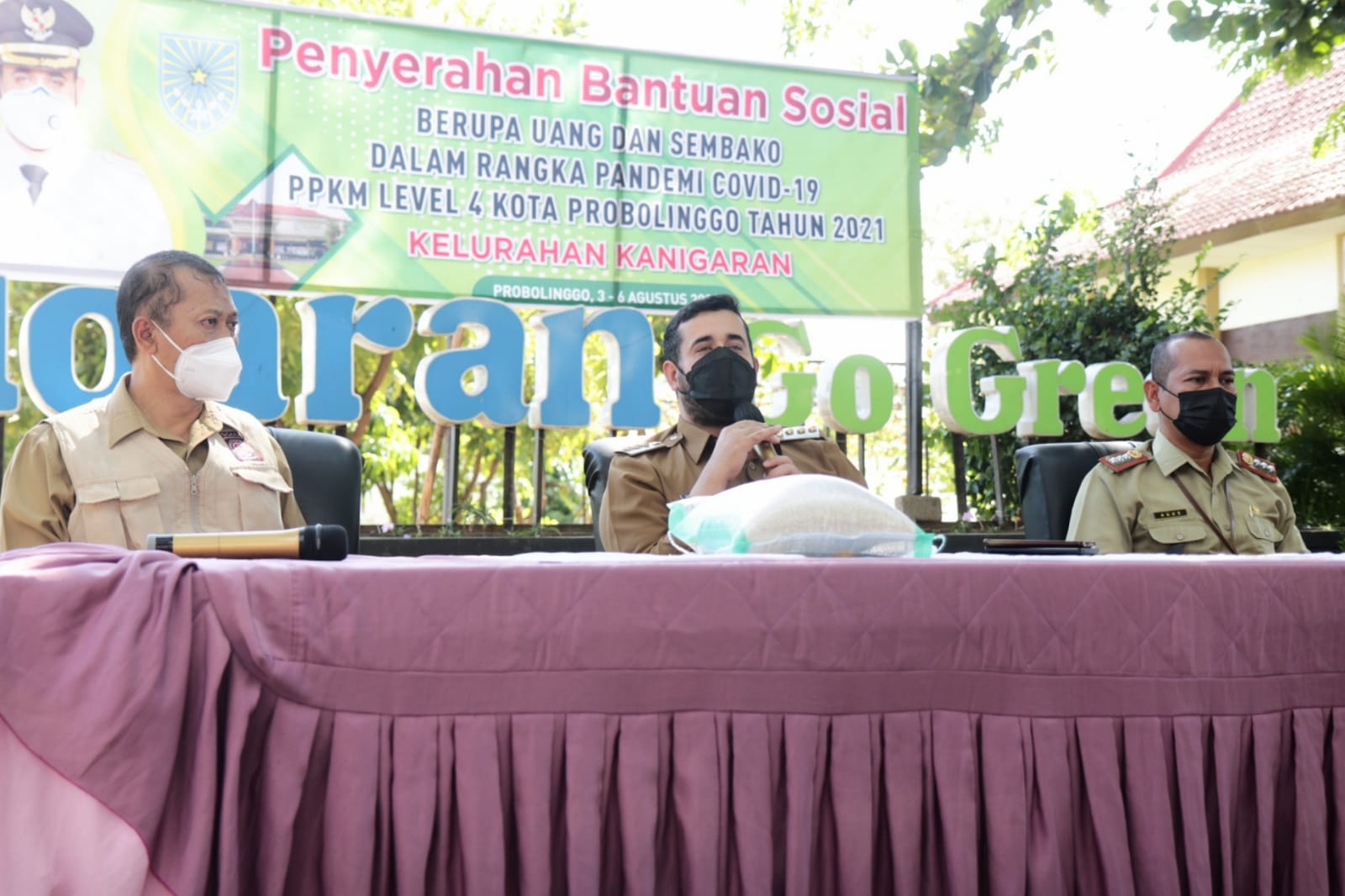 Kepala Dinsos P2KB Rey Suwigtyo dalam laporannya menjelaskan Pemerintah Kota Probolinggo menggelontorkan bantuan kepada 30.894 warga. Diberikan sebanyak 585 untuk warga Kelurahan Kebonsari Wetan dan 2.711 untuk warga Kelurahan Kanigaran yang terdampak PPKM Level 4 dan tidak tercover bantuan dari pemerintah pusat. Setiap warga mendapat beras 5 kilo gram dan uang tunai sebesar Rp 200 ribu.
